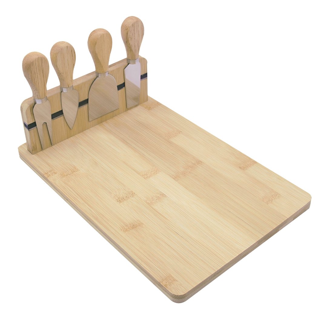 Jogo para queijo com 5 peças em bambu P20xL30xA8cm