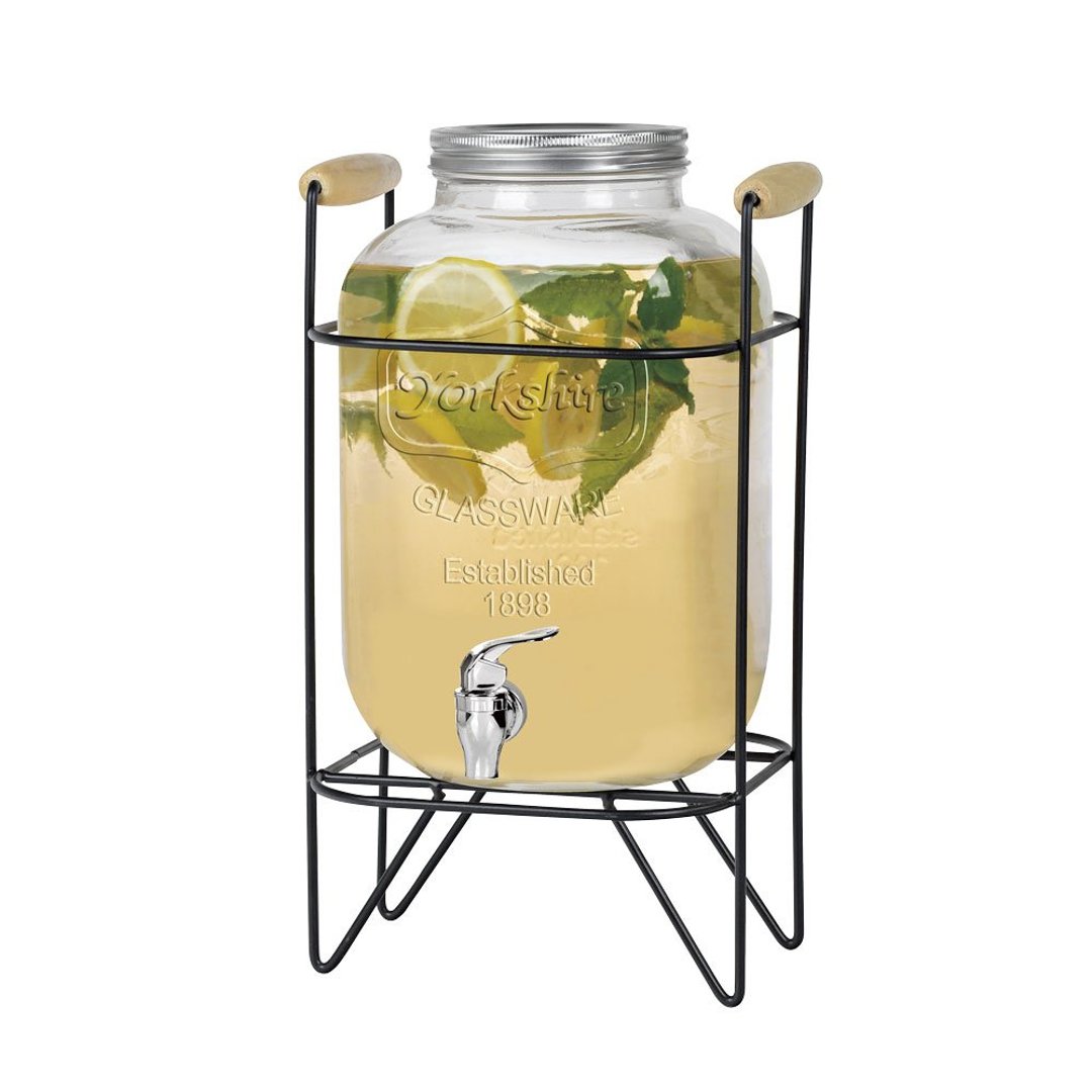 Suqueira em vidro com torneira de plastico tampa e suporte 8L